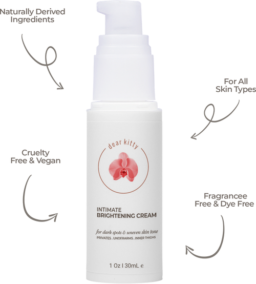 Finally A Solution! Discoloration can happen at any age - due to changing hormones, shaving, waxing, PCOS, acne and chafing. Our dermatologist tested cream effectively fades dark spots and evens skin tone. Dear Kitty helps women feel confident about their skin down below.